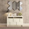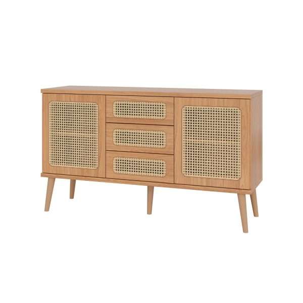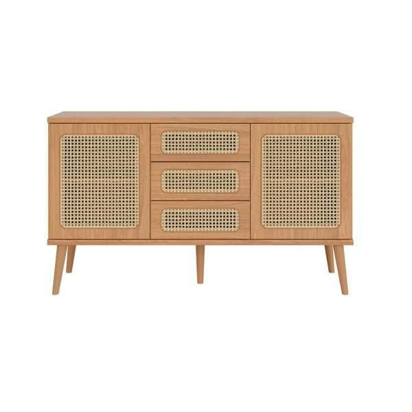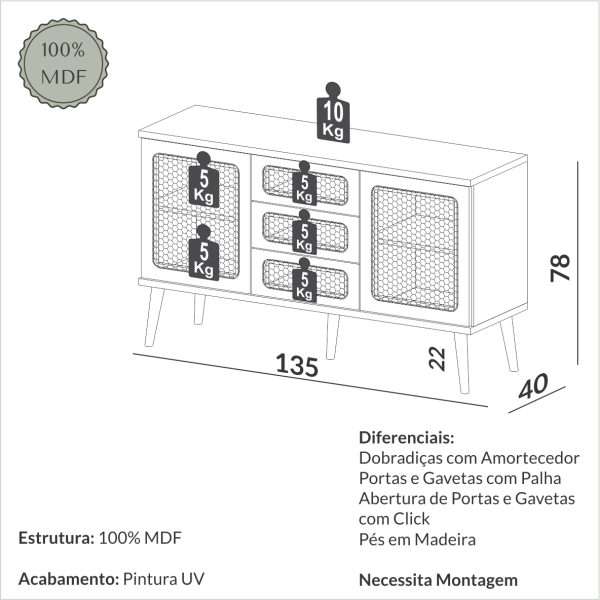 El buffet con tela está fabricado en MDF en la escala brillo Brillo y Mate, y tiene un nivel de dificultad de montaje: Medio. Su recubrimiento/acabado es: pintura UV.