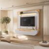 La encimera inferior con esquinas curvas complementa el diseño con elegancia y continuidad visual. Su puerta abatible con detalles mecanizados resalta la atención al detalle en el acabado y ofrece practicidad para organizar aparatos electrónicos y accesorios, manteniendo el ambiente visualmente limpio y ordenado. Más que un simple soporte para TV, el panel Onare es un elemento decorativo excepcional. Diseñado para acomodar televisores de hasta 70”, equilibra estética y funcionalidad, creando un espacio contemporáneo, acogedor y sofisticado, donde cada detalle refleja calidad, comodidad y buen diseño.
