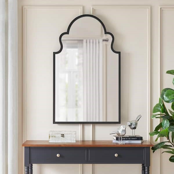 Espejo Home Decorators Collection Medium Traditional Arched Black Framed Mirror (26 in. W x 42 in. H)