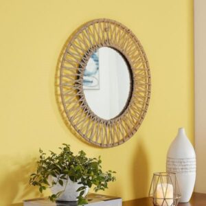 Espejo StyleWell Medium Round Brown Modern Accent Mirror with Polyrattan Braiding (24 in. Diameter)
