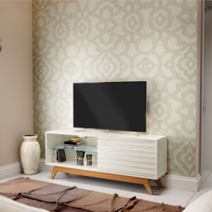 Una excelente opción para ti que quieres organizar todos tus dispositivos electrónicos en un mismo espacio. Producto fabricado 100% MDF. Dos puertas con bisagra basculante y una elegante estantería de cristal. Ideal para televisores de hasta 60”.