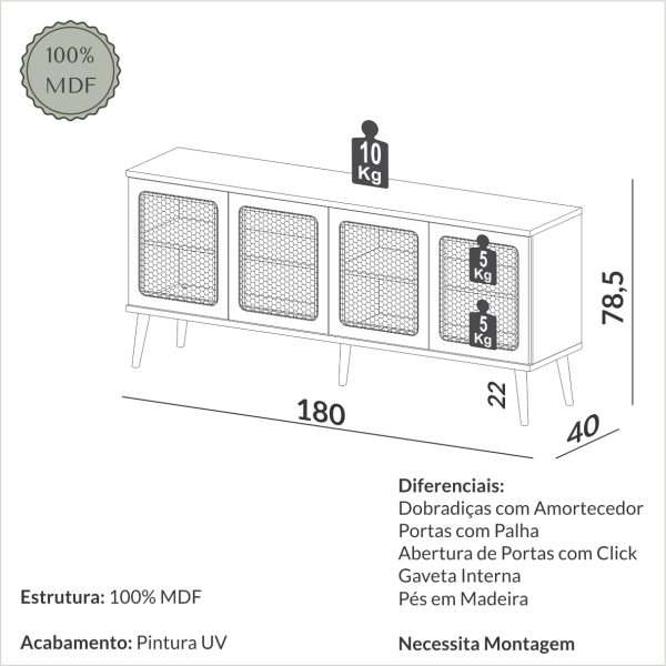 El rack con tela está fabricado en MDF en la escala brillo Brillo y Mate, y tiene un nivel de dificultad de montaje: Medio. Su recubrimiento/acabado es: pintura UV.