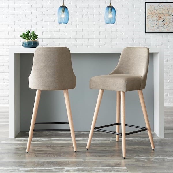 Taburete de bar set de 2 StyleWell 30 in. Benfield Biscuit/Walnut Wood Beige Upholstered Bar Stools with Back